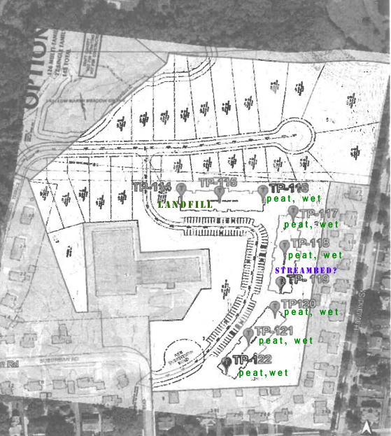 Well, yes, it isn’t on a map. If it was this whole argument would be a lot easier. It isn’t any kind of officially designated wetlands, nor is it recognized by the Department of Environmental Protection. You see, to be an official wetlands, it would need to show the presence of certain types of flora. Obviously we don’t have that. We would also need to show some streams feed the area. But we don’t have that either, because the inflow of water into the properry comes from unmapped underground springs. We can see the springs with our own eyes, but apparently the fact that they aren’t on a map means they aren’t real. You see the problem. Wetlands do, however, show a particular set of geologic markers, and that we DO have.