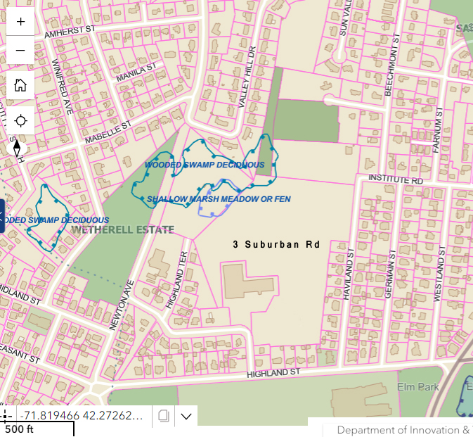 I have spoken to several people, who seem genuinely confused by my statement that 3 Suburban Road is a wetlands. The developer doesn’t seem to understand either. It’s not their fault. Current maps of the area DO show a wetlands in the northwest corner of the property. It’s small and seems fairly irrelevant to the proposal at hand aside from the 100 foot buffer zone required by the Worcester Wetlands Ordinance. That barely affects most of the land and it’s hardly some great revelation. It’s not what I am talking about.